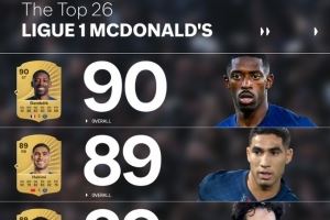 FC26官方法甲球员评分榜:登贝莱90最高,阿什拉夫和维蒂尼亚89