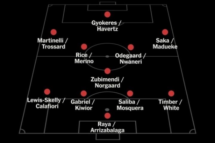 首发咋排?阿森纳当前阵容:11个位置均有至少两人可用